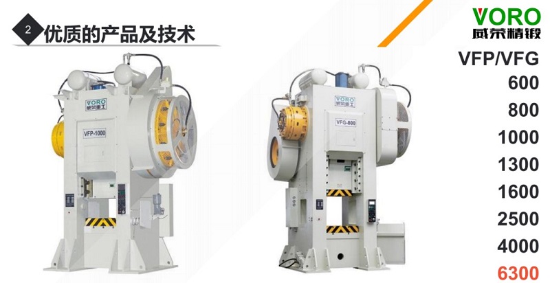 這次除了展示JH31-250T外,還在會場向業(yè)界人士介紹了我司的主打產(chǎn)品——威榮熱模鍛壓力機系列。威榮熱模鍛主要分為兩大類:適合打鐵件的一級傳動——VFP系列,和適合打鋁件的二級傳動——VFP-G系列,噸位有600-4000T等多種型號,同時6300T目前也在設(shè)計研發(fā)當中,相信不日就會出現(xiàn)在大眾視野。