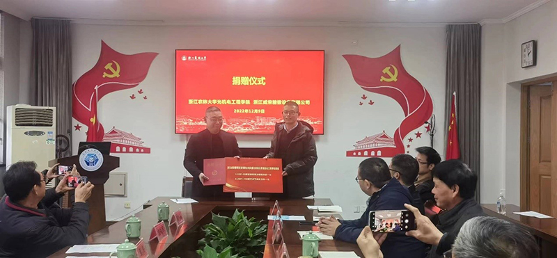 12月9日下午,浙江威榮精鍛設備有限公司捐贈儀式暨產學研合作簽約與交流會舉行。浙江威榮精鍛有限公司總經理董銘一行與會,學院院長周國泉、黨委書記何利平等領導及相關學科教師代表參加會議。